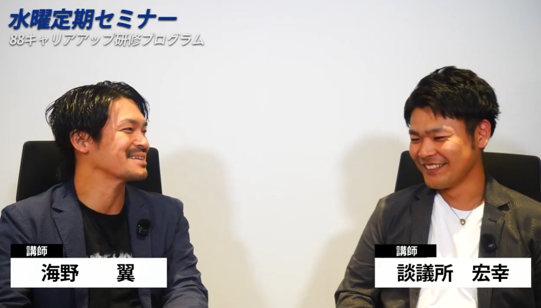 2025年9月17日(水)、第3週水曜日の定期セミナー「88キャリアアッププログラム研修」が開催されました! 今回の講義は、i3 business academy代表の海野翼氏とアドバイザーの富村翔氏が進行し、ワークはグ […]