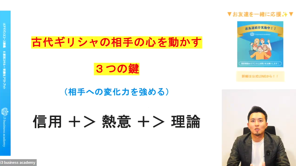 2025年9月24日(水)、第1週水曜定期セミナー「セールスメソッド講義」が開催されました! 今回のテーマは、『ヒアリング【理論編】後編』です。 講義は、i3 business academyの三輪創琉講師、前田啓希講師 […]
