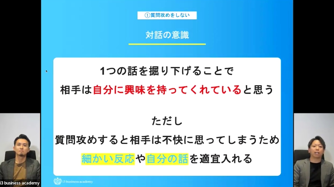 講義は、i3 business academyの三輪創琉講師、前田啓希講師が進行し、司会は平賀鈴菜氏が担当しました。