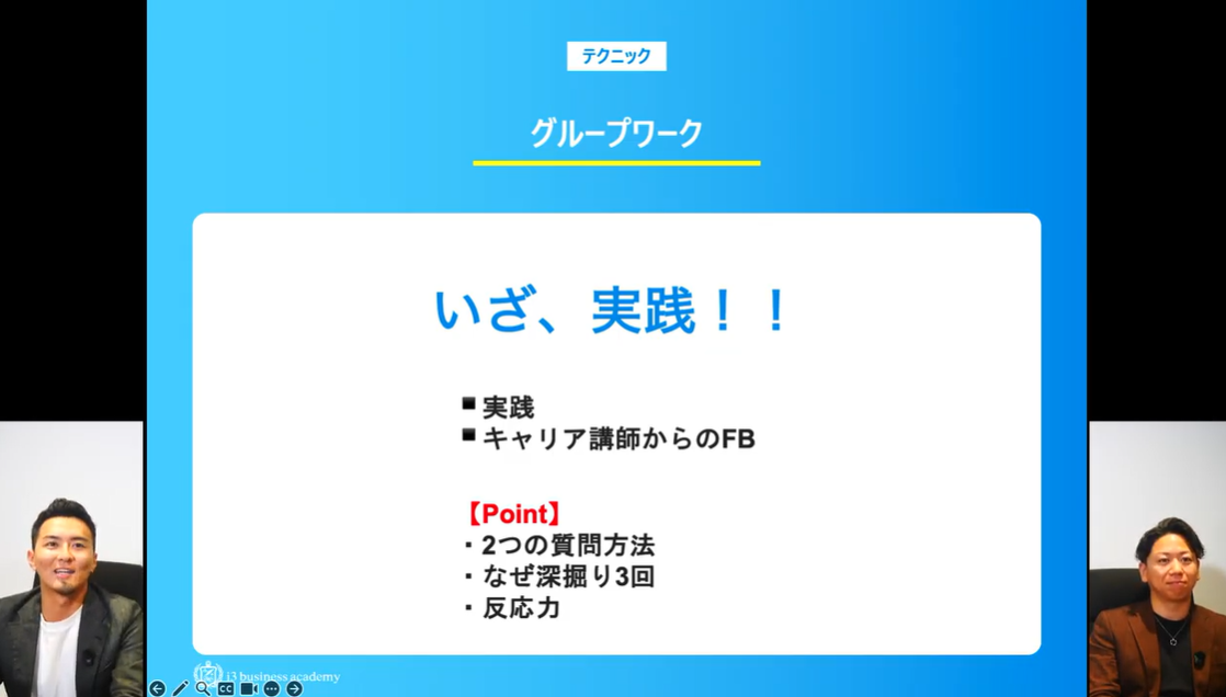 講義は、i3 business academyの三輪創琉講師、前田啓希講師が進行し、司会は平賀鈴菜氏が担当しました。